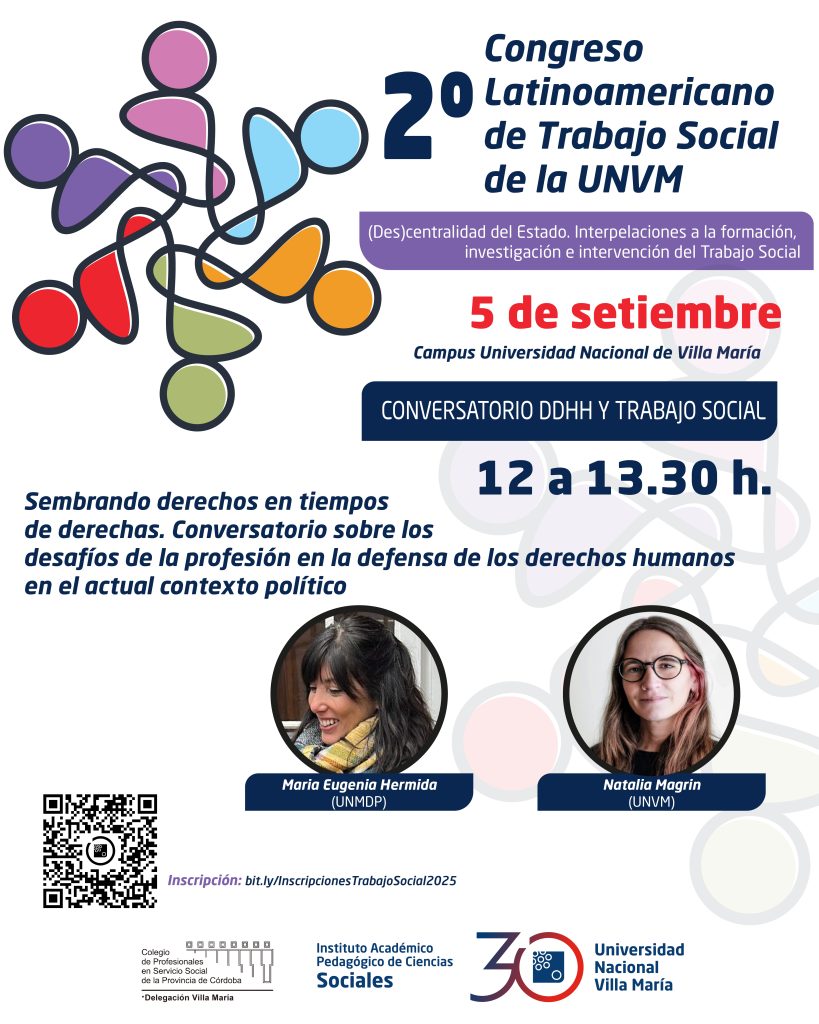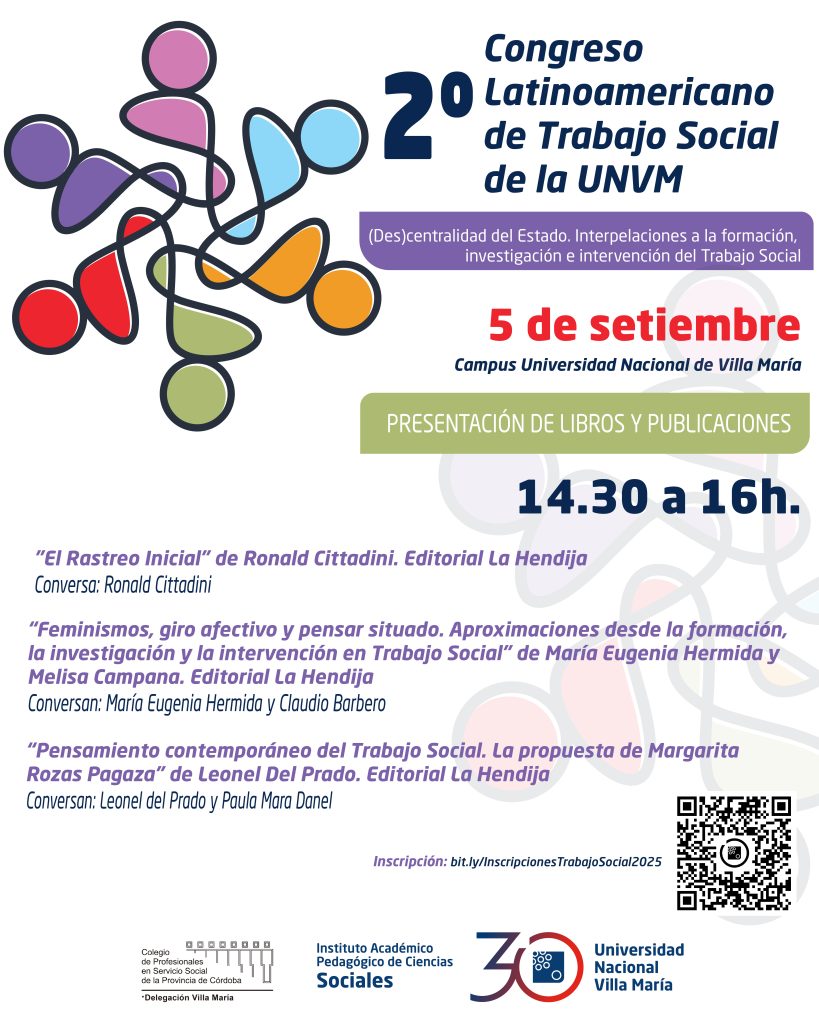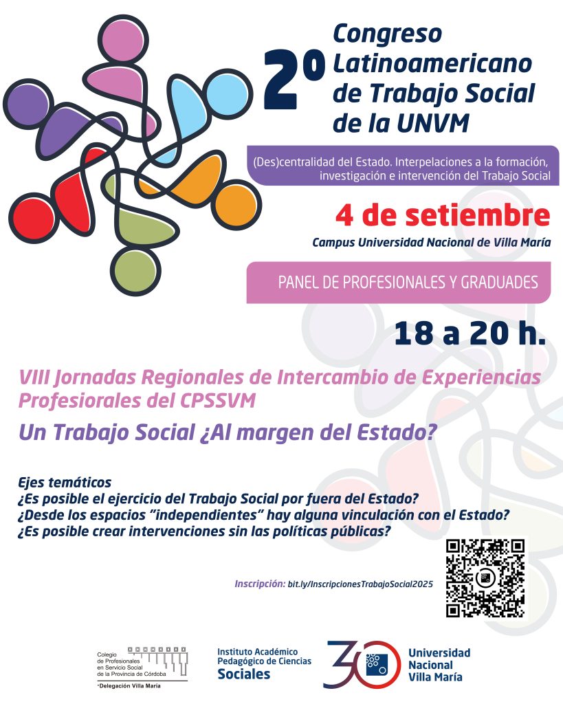 Bajo la temática “(Des)centralidad del Estado. Interpelaciones a la formación, investigación e intervención del Trabajo Social”, se desarrollará el jueves 4 y viernes 5 de septiembre del corriente, en el Campus de la sede Villa María de la UNVM, organizado por el Instituto de Ciencias Sociales.